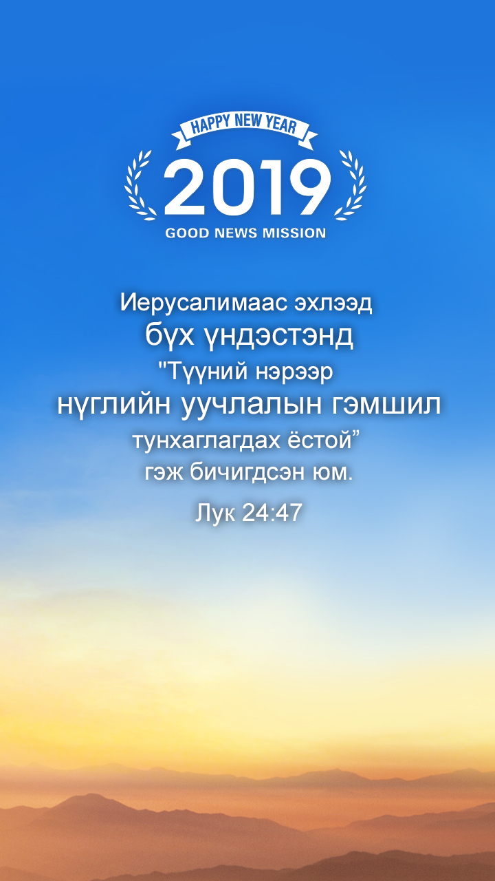 2019년에는 우리 모두, ‘그의 이름으로 죄 사함을 얻게 하는 회개가 예루살렘으로부터 온 땅 끝까지 전파’되도록 복음을 전합시다. 마음을 쏟읍시다. 힘을 같이합시다. 같이 기도합시다. 물질로 뒷받침하고 봉사합시다. 이 일에 우리 모든 교회가 하나가 되어 달려간다면, 하나님의 축복 가운데 이 성경 말씀이 이루어질 것입니다. 하나님이 기뻐하실 것입니다. 그 이름을 인하여, 예수 그리스도의 이름으로 ‘죄 사함을 얻게 하는 회개가 예루살렘으로부터 시작해서 모든 족속에게 전파되는’ 일에, 우리가 다같이 함께 손을 잡고 그 일에 같이 달려갑시다. 하나님이 여러분 인생을 축복해주실 줄 믿습니다.