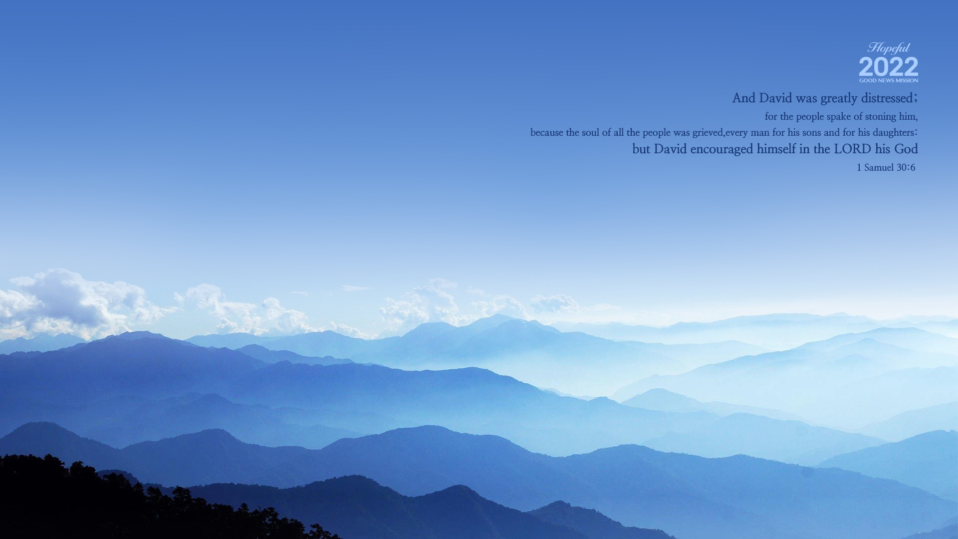 새로 맞는 2022년, 하나님의 은혜가 우리 선교회에 넘칠 줄 믿습니다. 여러분 한 분 한 분에게 축복이 넘칠 줄 믿습니다. 그러나 그 전에, 우리가 복을 받기 전에 사단이 시련이나 어려움을 줍니다. 그때 다윗처럼 하나님을 바라보면, 그 시련이나 어려움이 어려움이 아니라 바로 왕이 되는 축복이고, 총리가 되는 축복입니다. 하나님은 여러분을 버리지 않습니다. 여러분을 세우길 원하십니다. 여러분이 그 하나님을 바라보십시오. 하나님을 바라보면 하나님 새 힘을 주시고, 은혜를 입습니다. 다시 한 번 읽겠습니다.
